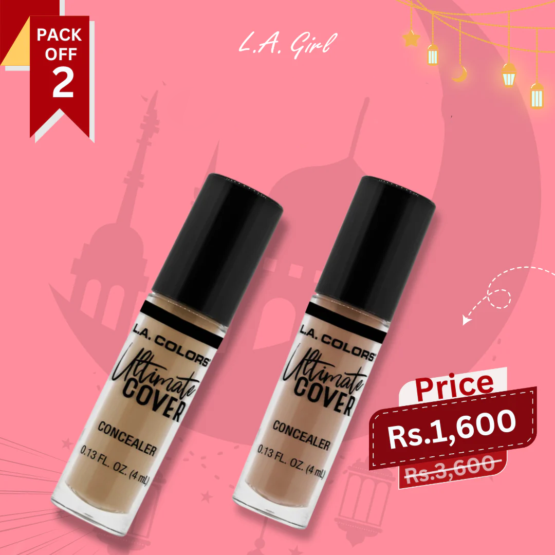 Get the ultimate coverage with the L.A. COLORS Ultimate Cover Concealer in Wheat and Nude. This pack of two offers a flawless finish for all skin tones, concealing imperfections and blemishes. With a professional formula and long-lasting coverage, achieve the perfect base for any makeup look.